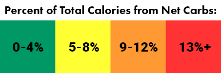 Percent of Total Calories from Net Carbohydrates: Since servings sizes often vary significantly, this is the most consistent metric of keto-friendliness.